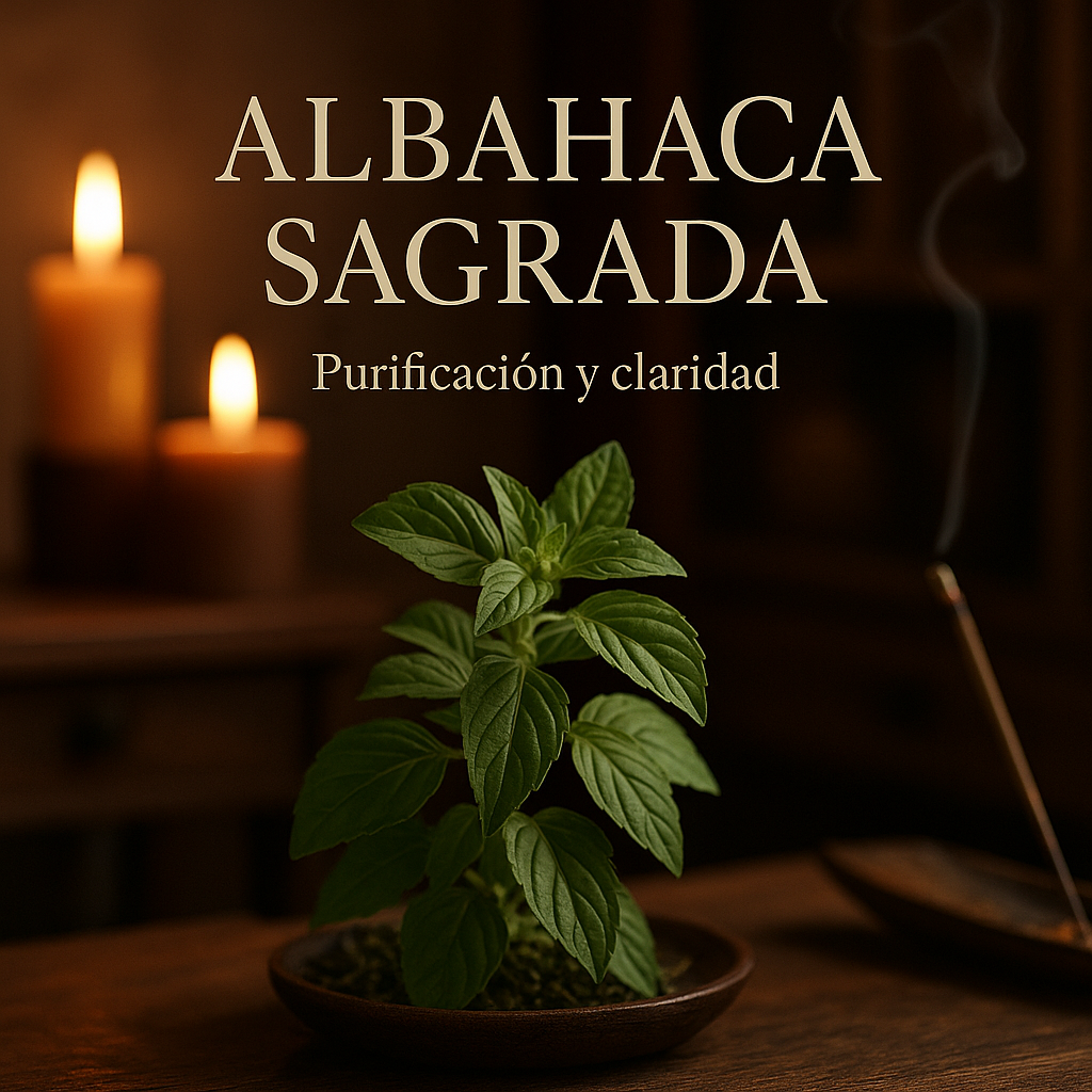 Albahaca sagrada: símbolo de pureza y conexión divina. Purifica el entorno, eleva la vibración espiritual y fortalece la fe. Favorece la calma y la claridad mental.