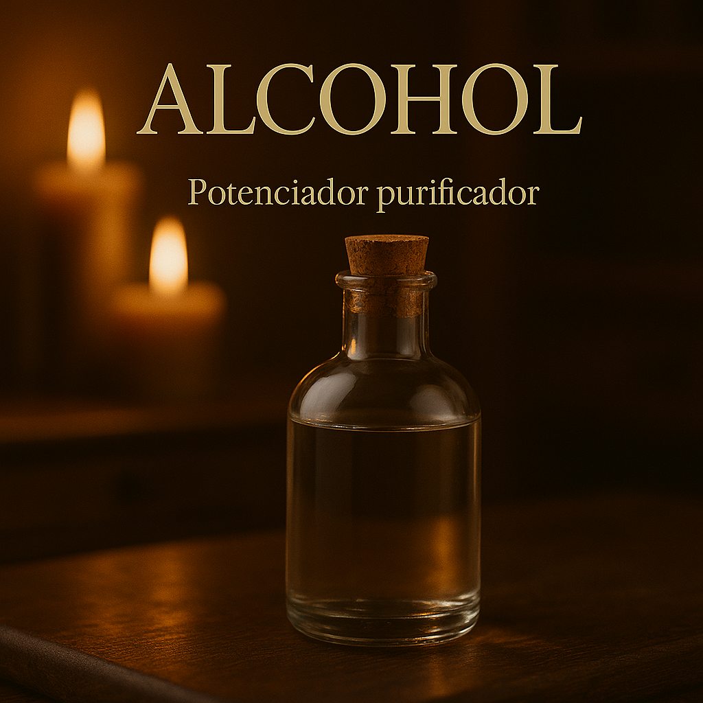 Alcohol: potencia la acción purificadora del preparado, ayudando a disolver las energías negativas y a limpiar profundamente los espacios.
