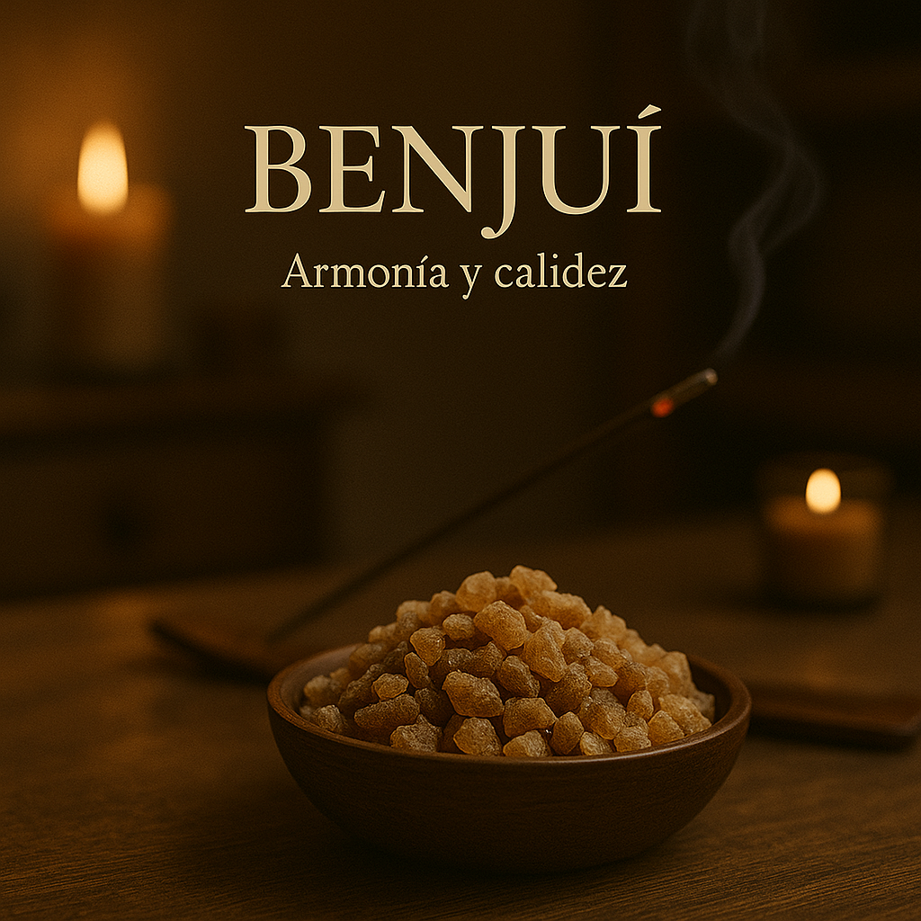 Benjuí: ayuda a sanar las heridas emocionales y espirituales, promoviendo el perdón y la paz interior. Su aroma estimula la elevación espiritual y la protección.