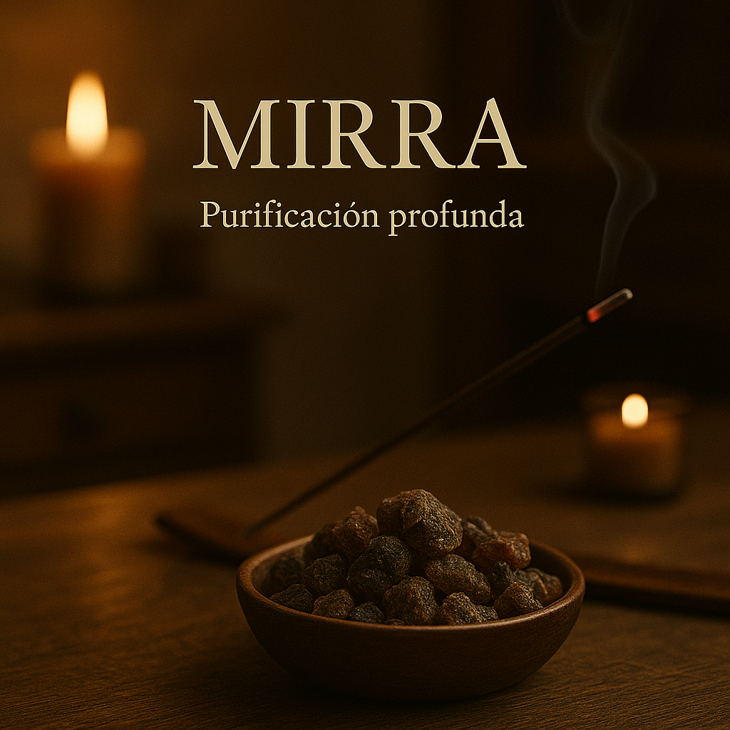 Mirra: potencia la sanación y la fortaleza interior. Favorece la introspección, el perdón y la liberación de bloqueos energéticos.